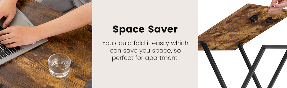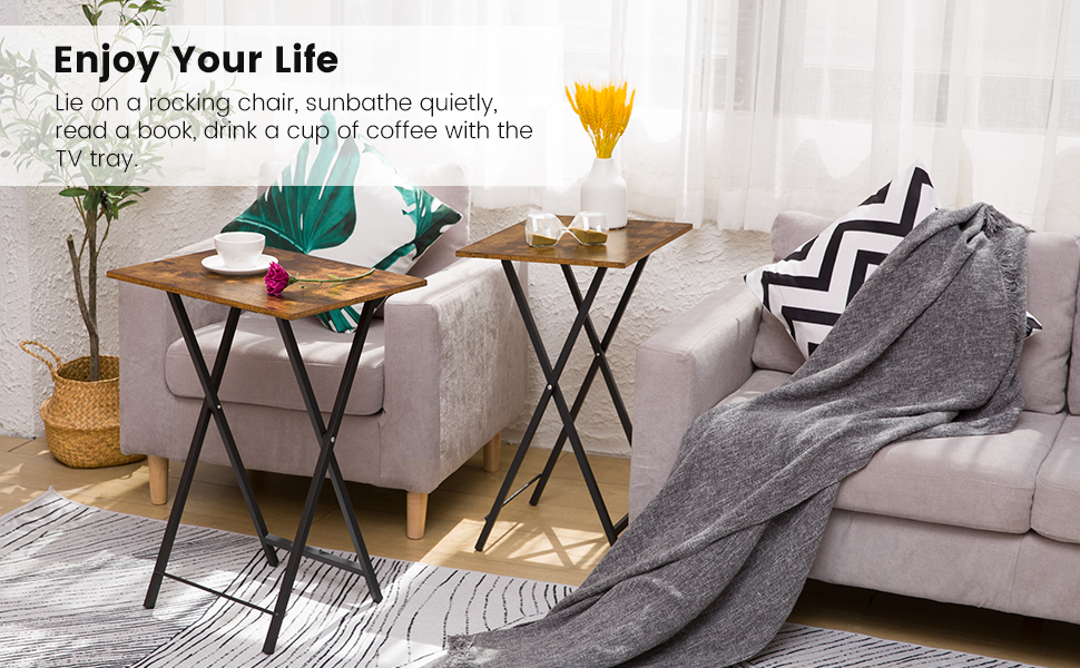 - geséchert Stabilitéit: d'Televisiounsdëscher sinn aus mdf. gutt gebaute X-Frame Base zielt fir eng robust a stabil Konstruktioun ze bidden. och ouni Clips ze fixéieren, Dëse Set vun ausklappbarem Dësch wäert net zesummeklappen wann Dir ronderëm beweegt