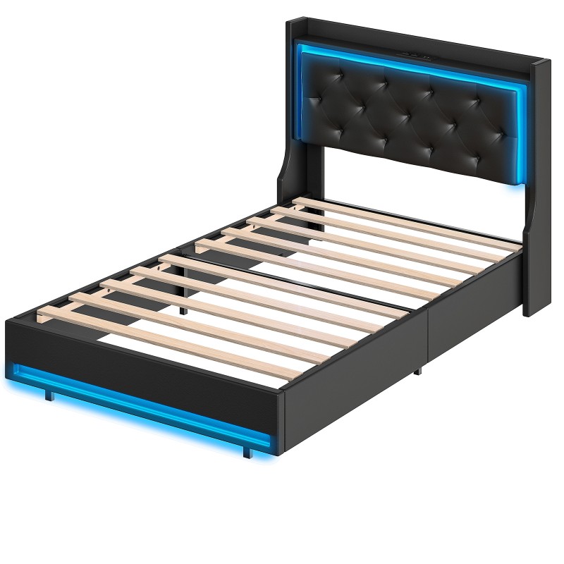- أضواء LED متعددة الألوان: يتميز هيكل السرير المزدوج الأسود هذا بمصابيح LED ذات 16 لونًا عند رأس السرير ونهايته, عرض 22 الأوضاع الديناميكية و 5 مستويات السطوع. استخدم جهاز التحكم عن بعد المرفق لضبط الألوان, سطوع, والأوضاع لخلق الأجواء المفضلة لديك