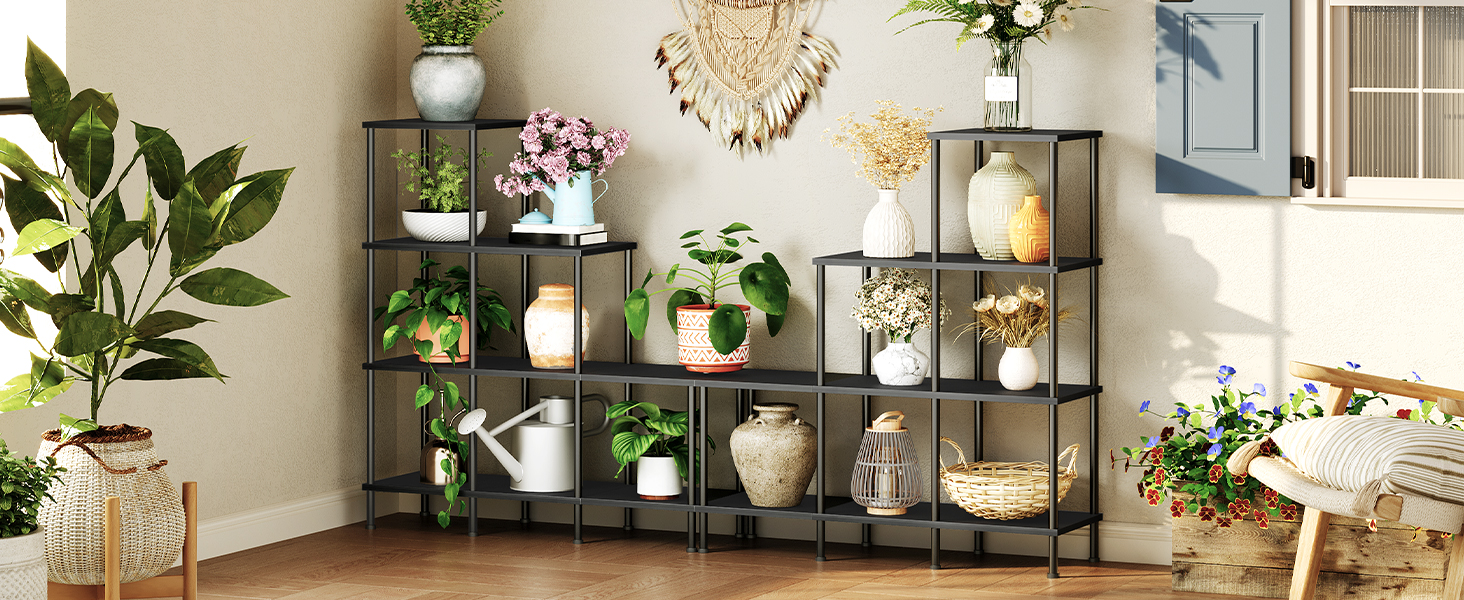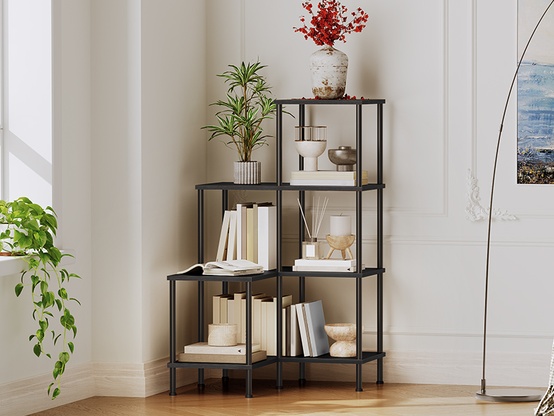 - تصميم متدرج وأسلوب أنيق: يتميز رف الزاوية هذا بتصميم على شكل سلم مع مظهر فريد وأنيق. أنابيبها المعدنية مقترنة بألواح سوداء, تعطي لمسة عصرية تكمل ديكور منزلك