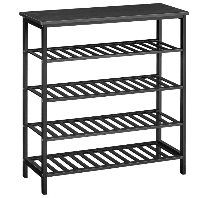 رف الحذاء الخيزران, 5-رف أحذية الطبقة للدخول, 29.5" ل x 11.8" ث س 31.5" ح, يحمل 16-20 أزواج من الأحذية, تخزين رف أحذية الخيزران متعدد الوظائف, مستقر ودراسة, لخزانة, أسود, bb70xj01