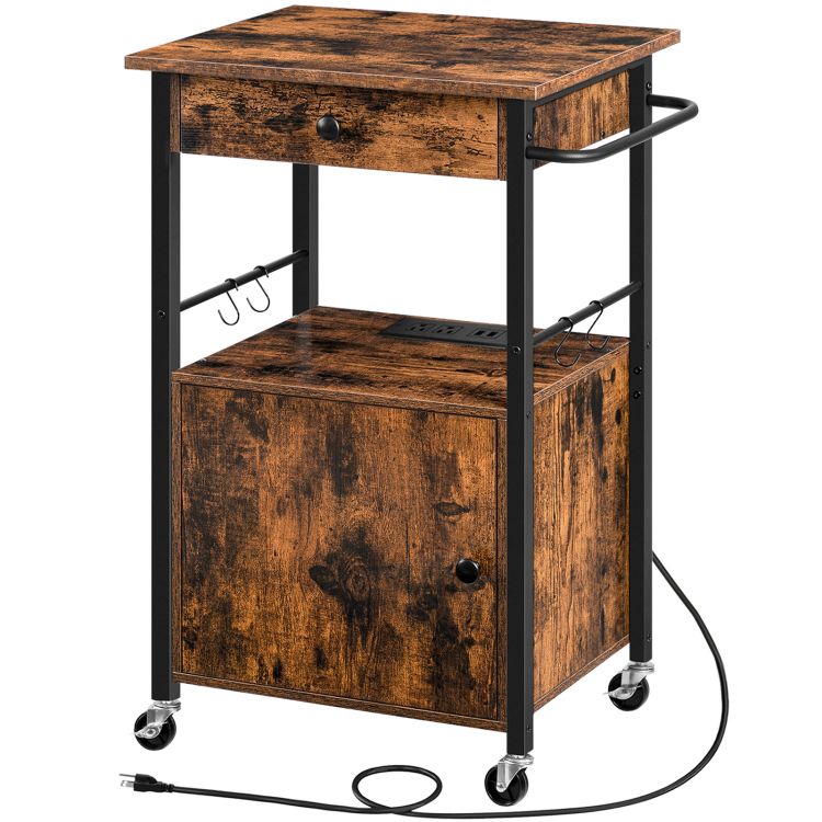 جزيرة المطبخ مع منفذ الطاقة, جزيرة تخزين المطبخ مع خزانة التخزين والدرج, عربة التخزين وموقف الميكروويف, للمنزل, المطبخ وغرفة الطعام, بني ريفي
