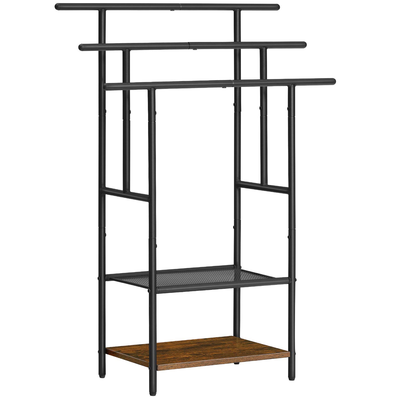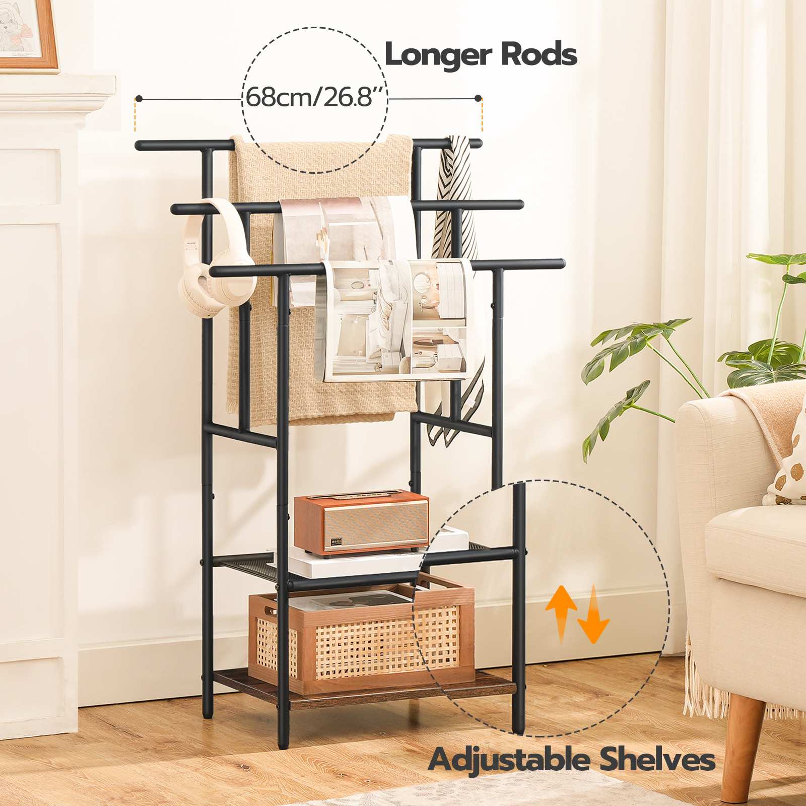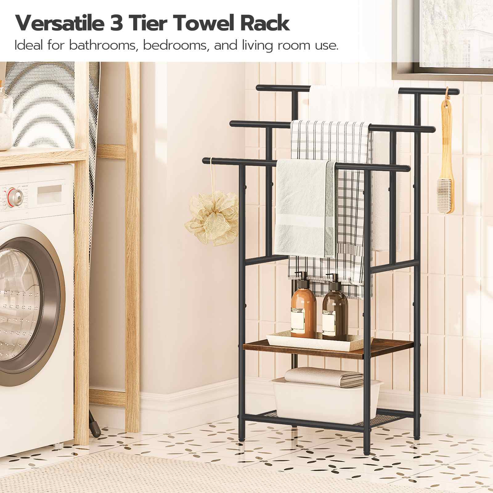 رف مناشف الحمام قائما بذاته, أسود & رف بطانية متدرج بارتفاع 100 سم باللون البني الريفي مع أرفف, رف عرض وتجفيف مناشف الحمام كبير الحجم