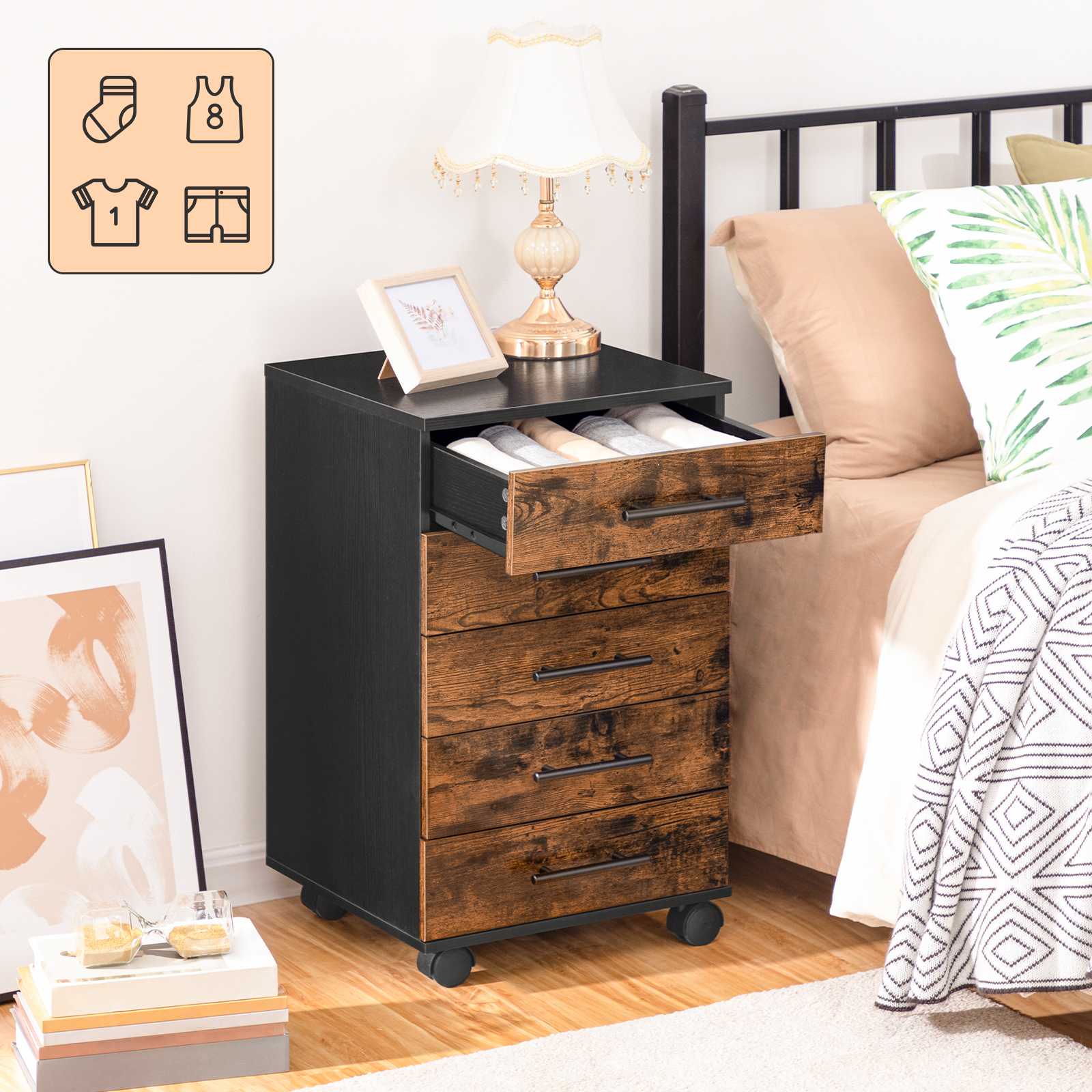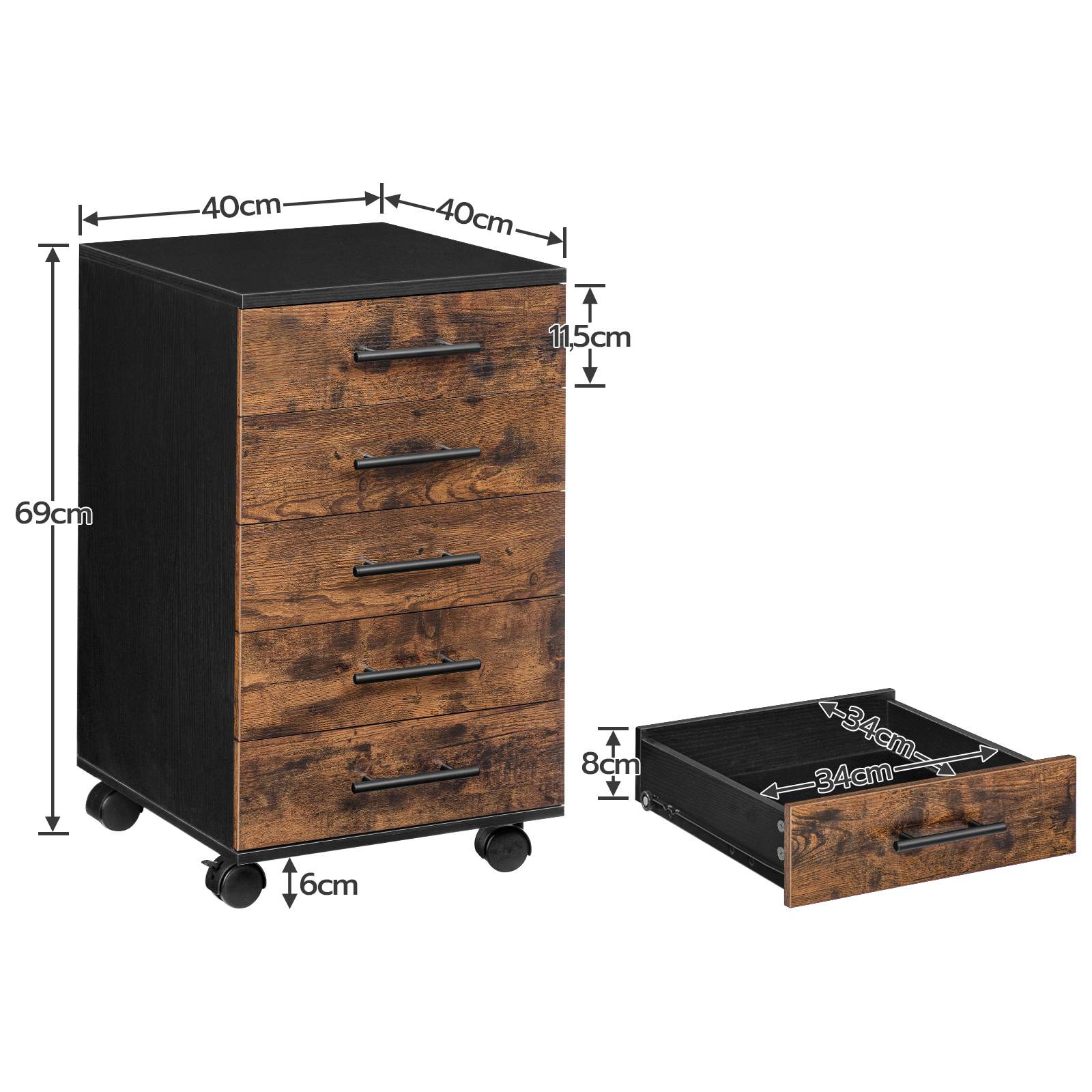 4 عجلات عالمية (2 مع الفرامل) ادعم إعدادك التعسفي لخزانة الملفات هذه عندما تحتاج إلى نقلها إلى أي مكان أو إبقائها في مكانها.