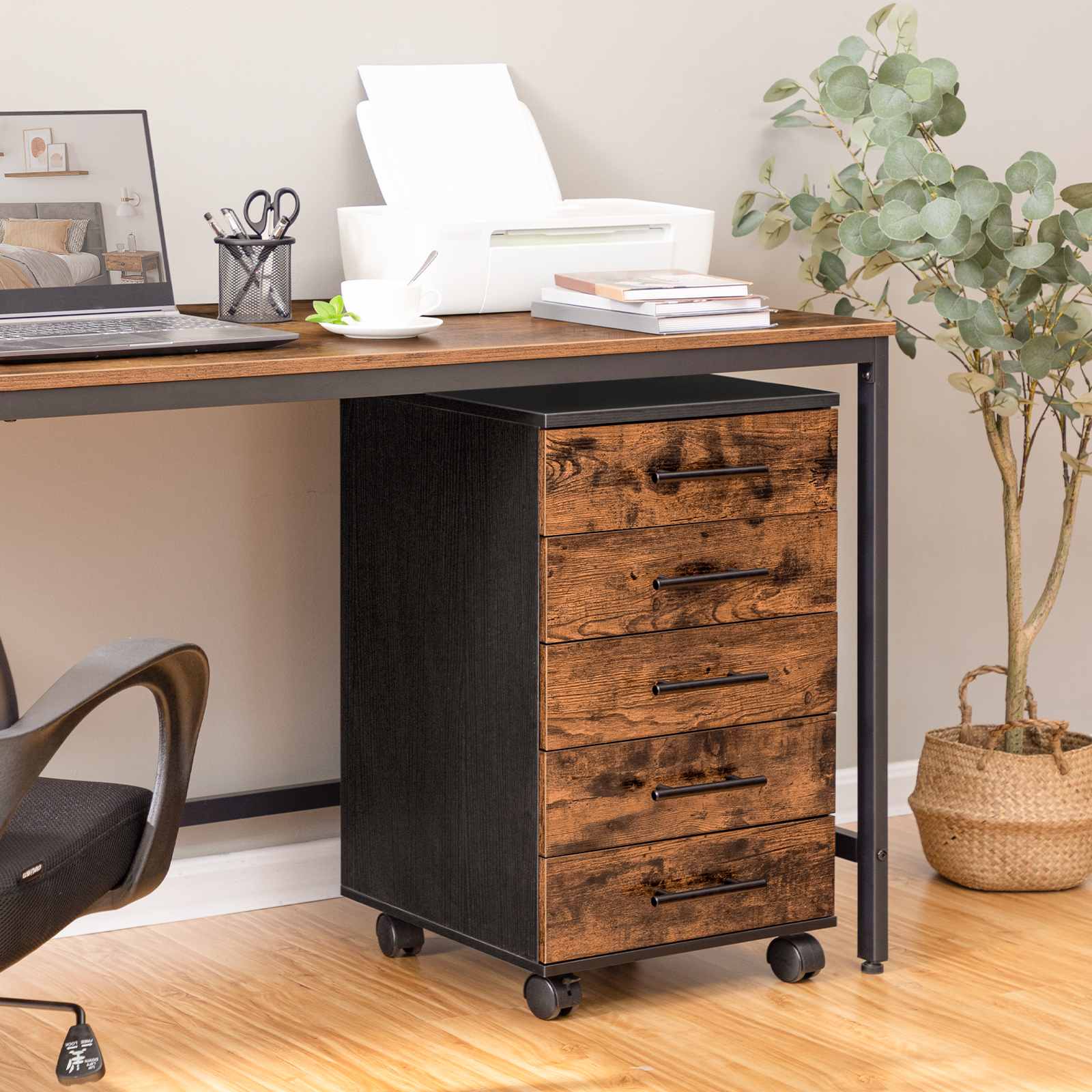 يساعد خزانة الملفات مع الأدراج على إنشاء مساحة مكتبية منظمة!