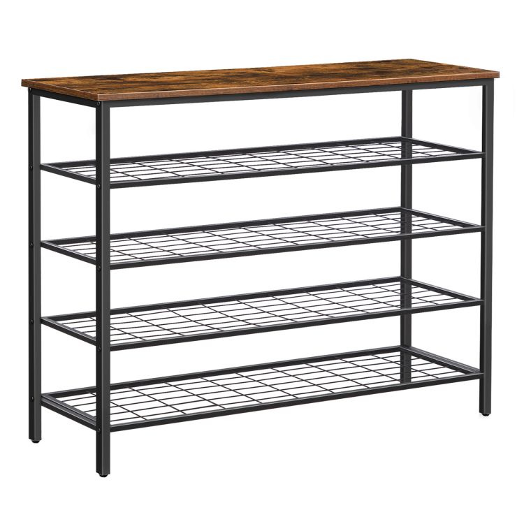 رف الأحذية, 5-رف حذاء الطبقة, منظم تخزين الأحذية الصناعي مع 4 رفوف شبكة معدنية, دائم ومستقر, مثالي للدخول, المدخل, خزانة, غرفة نوم, التجميع سهل, بني ريفي