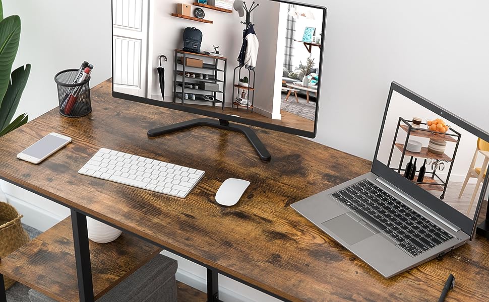 - تَخطِيط: بفضل سطح الطاولة فسيح و 4 أرفف تخزين مفتوحة, شاشتين, ملفات, الكتب وأدوات العمل الأخرى كلها في مكان واحد. هذا يسمح لك بتدوين الملاحظات, وضع بعض الحاويات أو السلال أو إزالة رف واحد. ستكون ترقية كبيرة لإعداد مكتبك