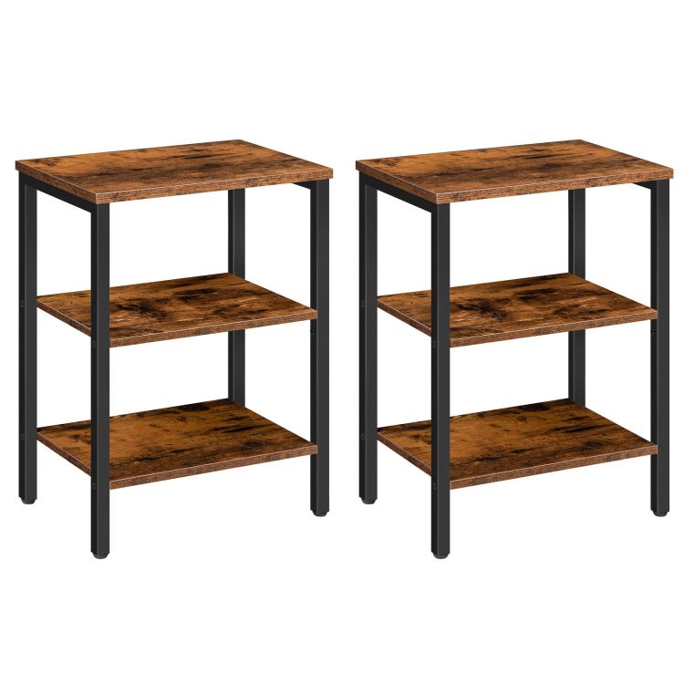طاولة النهاية, مجموعة من 2 منضدة مع أرفف تخزين 3 طبقات, طاولة جانبية للمساحات الصغيرة, غرفة المعيشة, مدخل, النمط الصناعي مزرعة, إطار مستقر, التجميع سهل, بني ريفي
