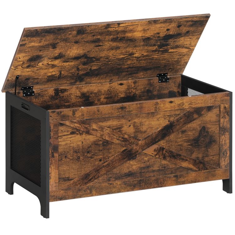 مقعد التخزين, 39.3" صندوق تخزين, صندوق تخزين مع 2 لوحات شبكية قابلة للتنفس, خزانة تخزين الألعاب, لعبة الصدر, لغرفة النوم, غرفة الجلوس, مدخل, ريفي البني والأسود