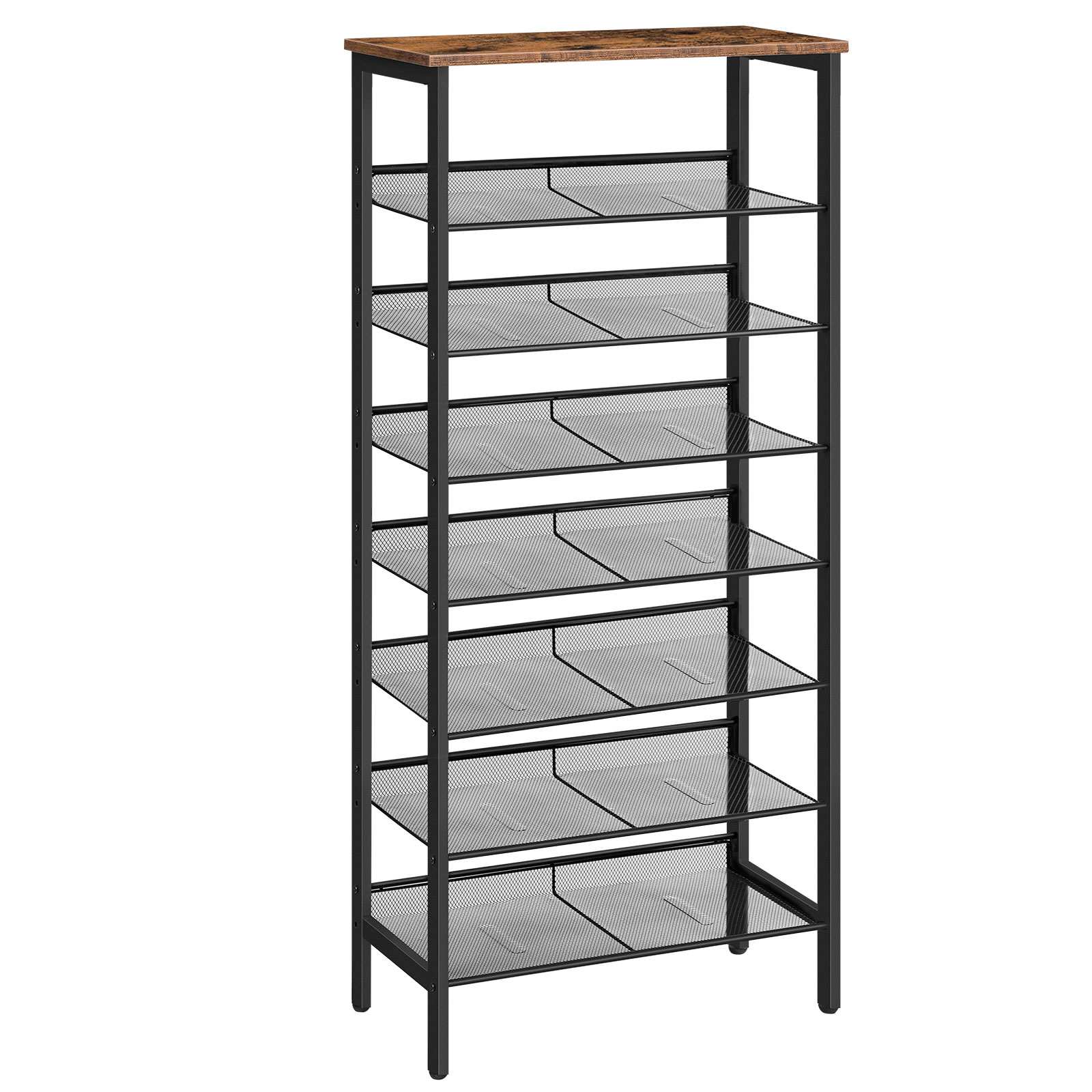 8-رف أحذية ذو سعة كبيرة, منظم تخزين معدني ثابت مع مسطح قابل للتعديل & رفوف مائلة, يستوعب 21-28 أزواج من الأحذية, تصميم لتوفير الفضاء
