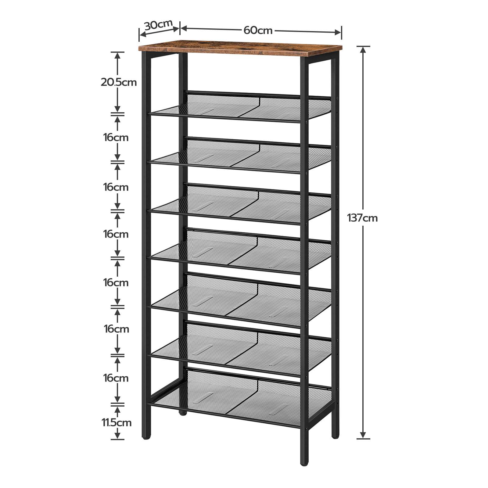 تصميم لتوفير الفضاء: With dimensions of 60cm (ل) × 30سم (دبليو) × 137سم (ح), this shoe rack is suitable for limited spaces such as entryways, غرف المعيشة, غرف نوم, الخزانات, dormitories and apartments, maximizing vertical space with minimal floor occupation.