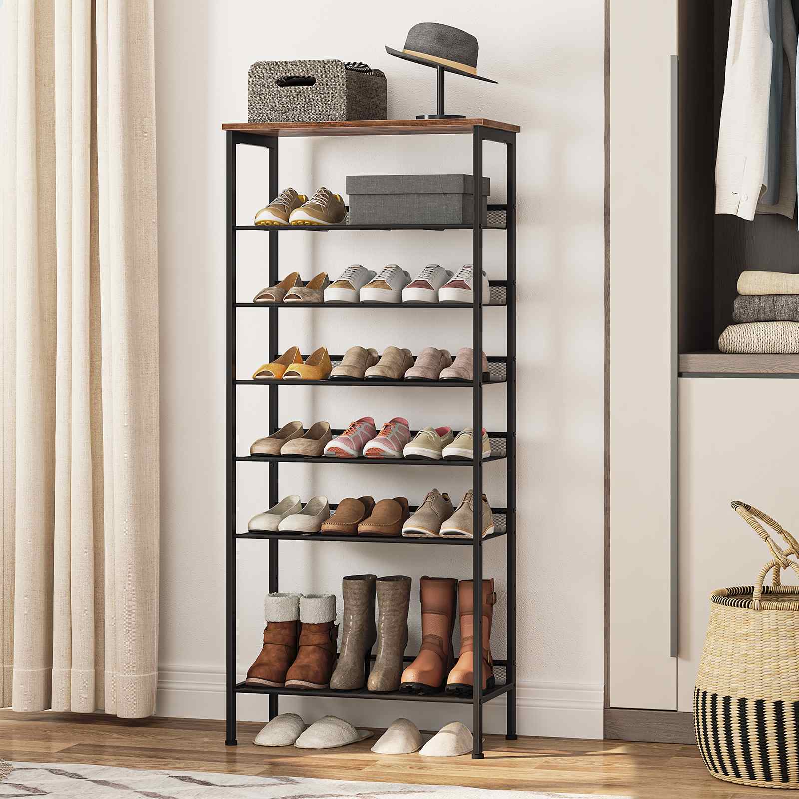 Adjustable Flat/Slant Shelves: The 17.78cm-high open metal shelves can accommodate various footwear and purses at either flat or slanted angles. A raised lip prevents footwear from slipping, and detachable shelves facilitate convenient storage of high heels and winter boots.