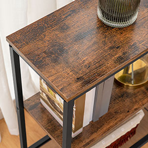 طاولة وحدة التحكم, 4-طبقة الكتب الصناعية, طاولة مدخل ضيقة, طاولة سوفا, خزانة الكتب, رف تخزين, طاولة المدخل, المدخل, غرفة المعيشة, غرفة نوم, بني ريفي