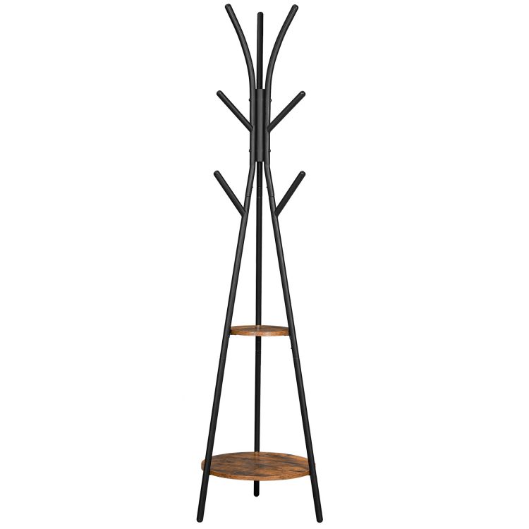 شجرة قاعة رف معطف معطف مع 2 أرفف تخزين و 9 الخطافات البني الريفي والأسود