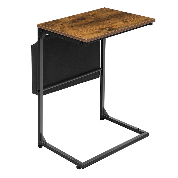 طاولة جانبية, طاولة نهاية الأريكة على شكل C مع جيب التخزين, 27.2-طاولة الوجبات الخفيفة في ارتفاع بوصة, طاولة الكمبيوتر المحمول المحمولة بجانب السرير أو الأريكة لمساحة صغيرة, إطار الصلب الصناعي, بني ريفي