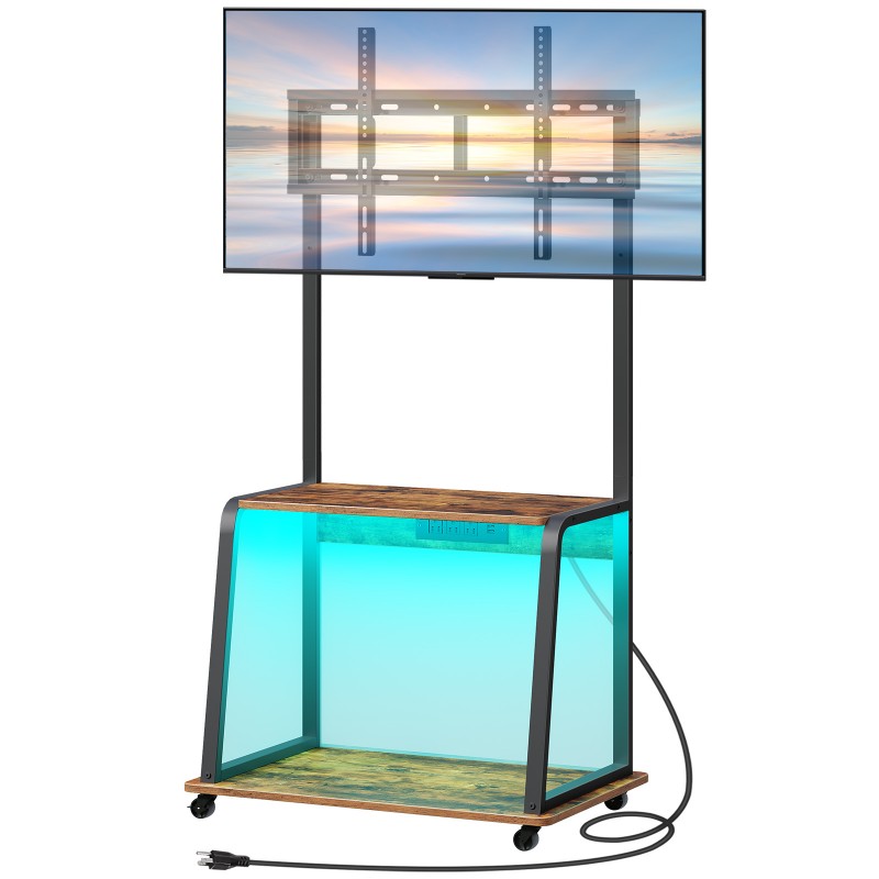 حامل التلفزيون البني والبني والأسود مع مخرج جبل وسلطة تصل إلى 55 "", حامل تلفزيون متداول خمر مع مصابيح LED, مرتفعات طاولة وحدة تحكم تلفزيونية قابلة للتعديل لغرفة المعيشة, غرفة نوم, مكتب
