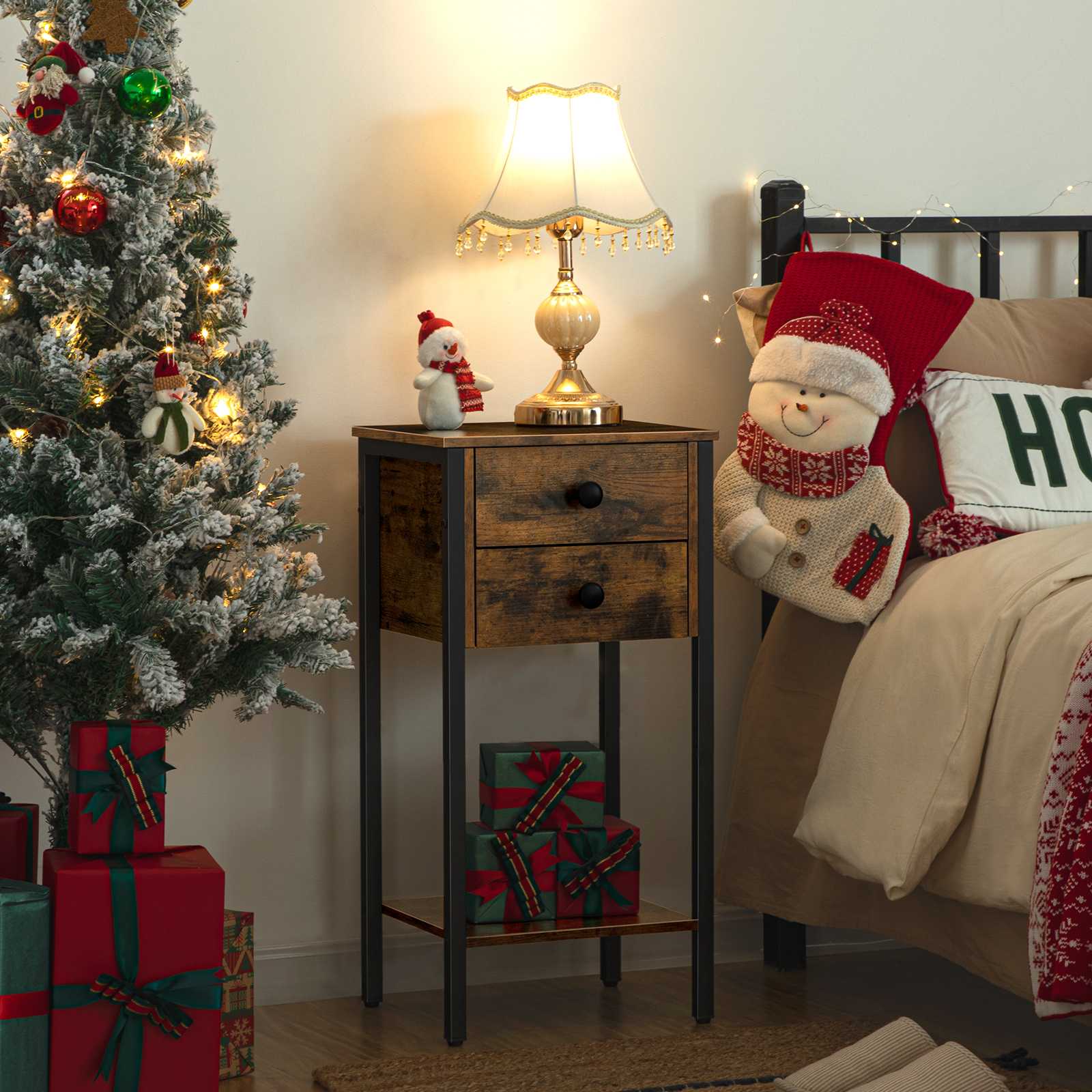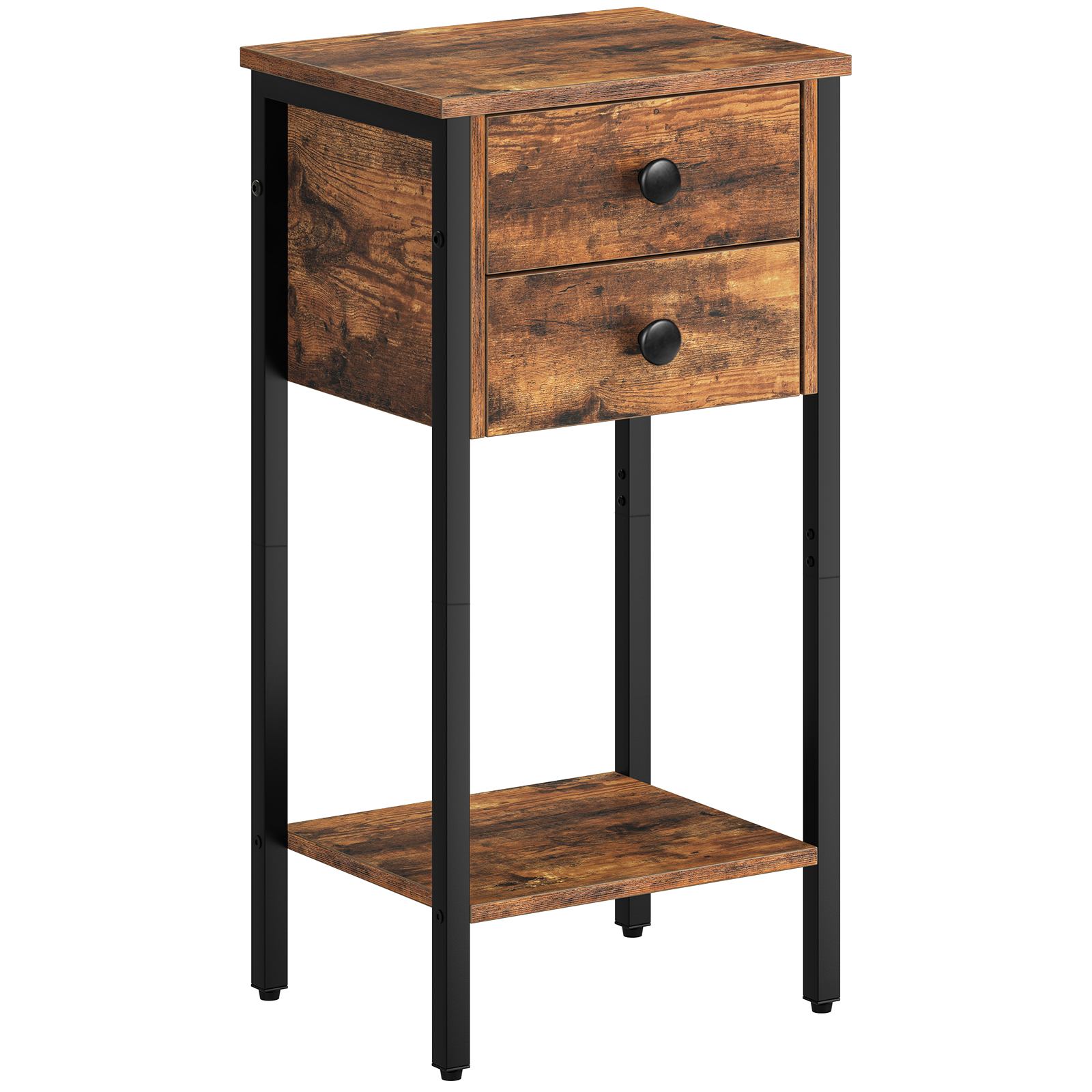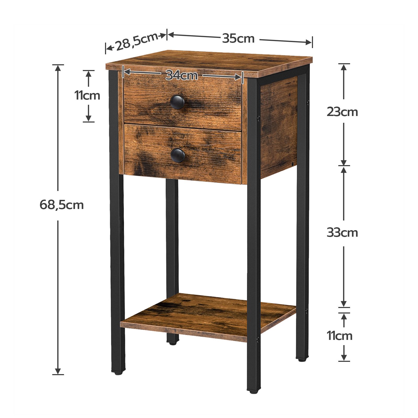منضدة طويلة, طاولة بجانب السرير مع 2 الأدراج ورف التخزين, طاولة نهاية الهاتف الصناعية للدراسة, غرفة نوم, توفير مساحة الطاولة الجانبية, تجميع سهل, ريفي البني والأسود