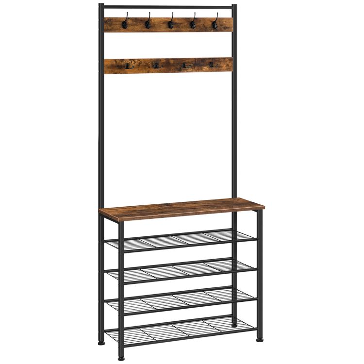 معطف صناعي, رف معطف بني ورف أسود مع تخزين الأحذية, شجرة قاعة قائمة بذاتها مع 9 خطافات, رف الحذاء والمعطف للمراب, مدخل, اطار معدني, قوي