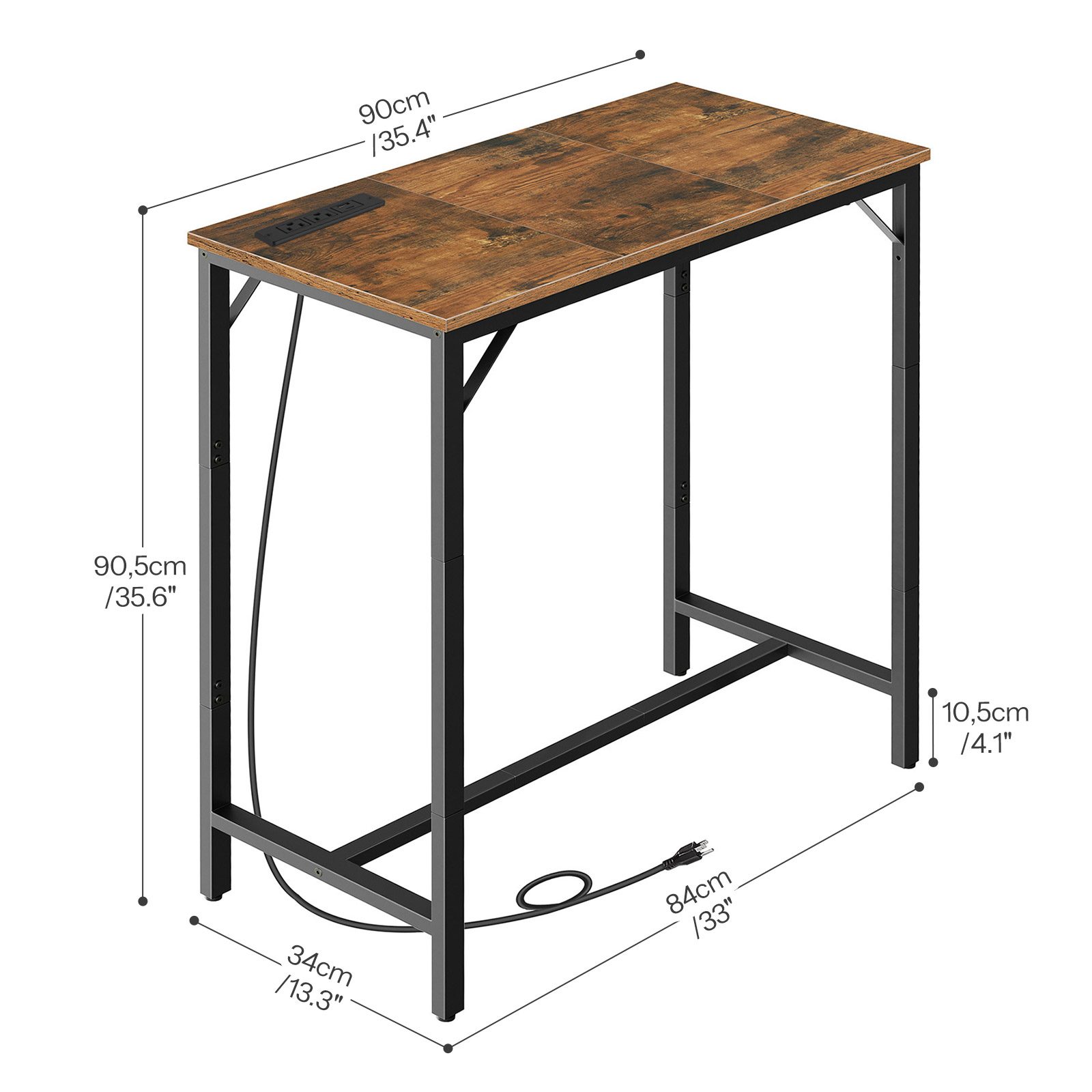 طاولة شريط مع محطة الشحن, طاولة حانة مستطيلة, طاولة قهوة عالية أعلى, طاولة ارتفاع شريط العداد, طاولة طعام طويلة ضيقة طويلة, ريفي البني والأسود