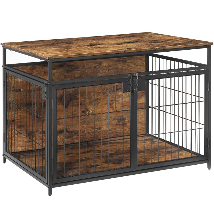 أثاث قفص الكلاب, 38.6 طاولة قفص كلب خشبي بوصة مع 3 أبواب, أثاث بيت الكلب الداخلي للكلاب المتوسطة والكبيرة, طاولة نهاية جانبية, بيت الكلاب المقاوم للمضغ, Rustic Brown and Black BF93GW03