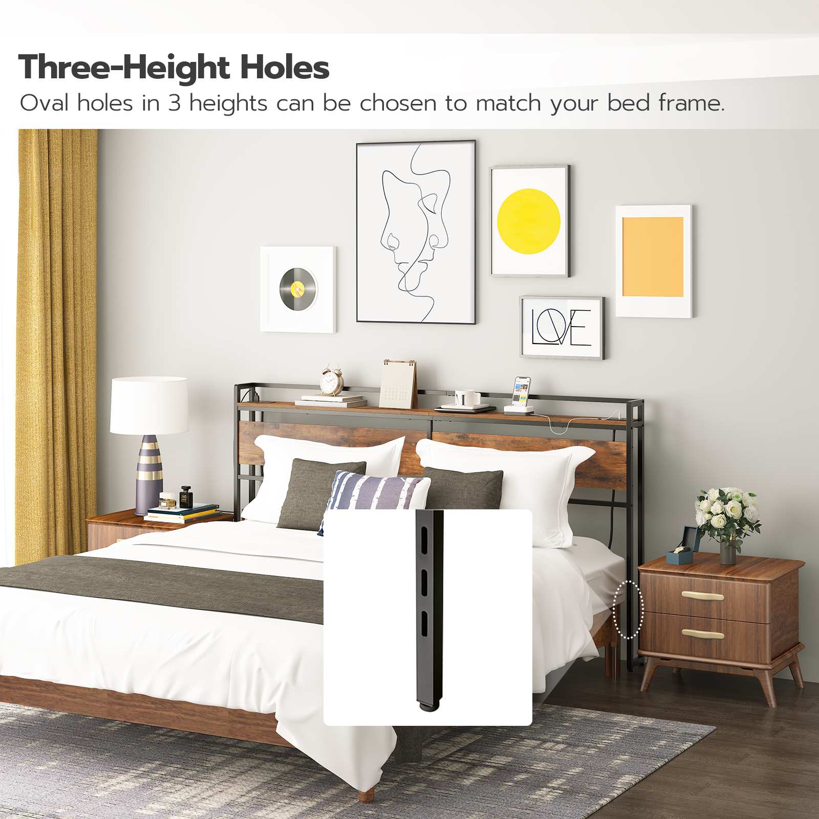 Classic Retro-Industrial Design: Featuring an exquisite brown panel paired with a black metal frame, the headboard exudes a strong retro aesthetic. The thoughtfully designed guardrail enhances its unique style, effectively elevating the overall home decor taste.