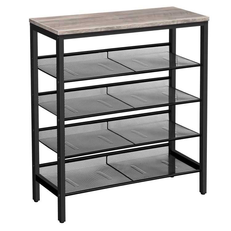 رف الأحذية, 5-وحدة تخزين الأحذية الطبقة شقة & رف منظم الأحذية القابل للتعديل المائل 16 أزواج, دائم ومستقر, للدخول, المدخل, خزانة, غرفة النوم, صناعي, رمادي