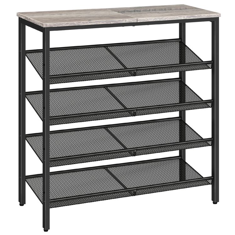 رف الأحذية, 5-تخزين أحذية الطبقة مع أرفف شبكية قابلة للتعديل, 16-20 أزواج من الأحذية, مستقرة ودائمة, قمة واسعة, قائما بذاته, معدن, صناعي, للدخول, خزانة, رمادي