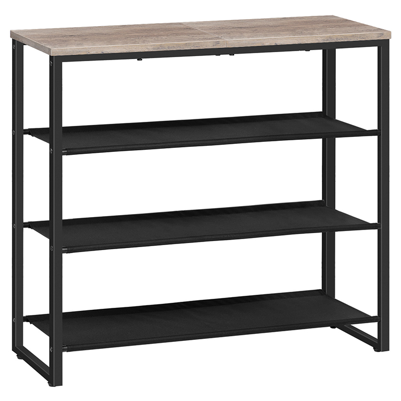 رف الأحذية الرمادي, 4 منظم تخزين الأحذية من الطبقة مع 3 رفوف قماش أكسفورد ولوحة علوية, يحمل 12-16 أزواج من الأحذية للدخول والخزانة, صناعي