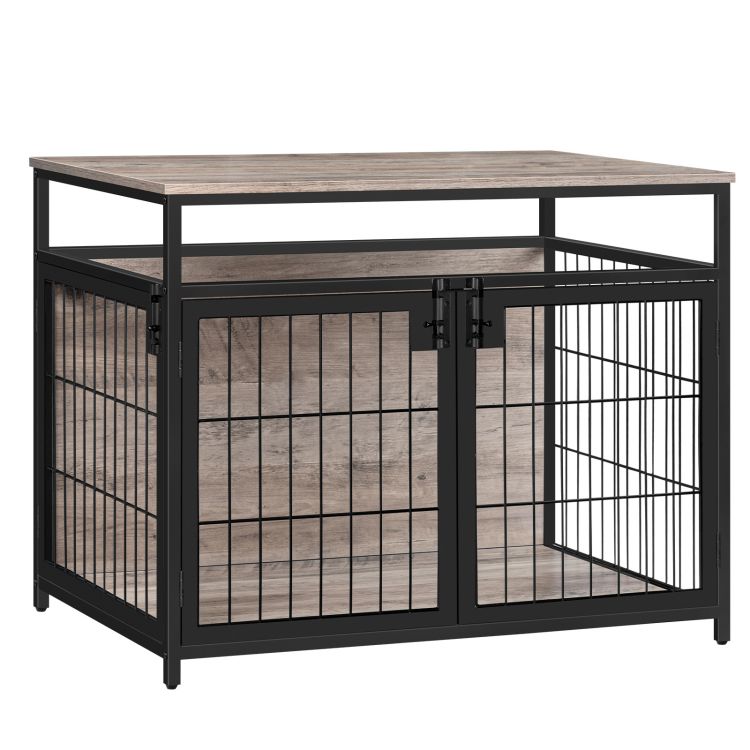أثاث قفص الكلب, قفص كلب خشبي, بيوت الكلاب مع 3 الأبواب الداخلية, شبكة مزخرفة صناديق الأليف الطاولة للكلب المتوسطة/الصغيرة, بيت الكلب المقاوم للمضغ, رمادي وسوداء