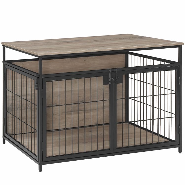 أثاث قفص الكلاب, 3 أبواب خشبية طاولة قفص الكلب, أثاث بيت الكلب الداخلي للكلاب المتوسطة والكبيرة, طاولة نهاية جانبية, بيت الكلاب المقاوم للمضغ, Rustic Brown and Black BG93GW03