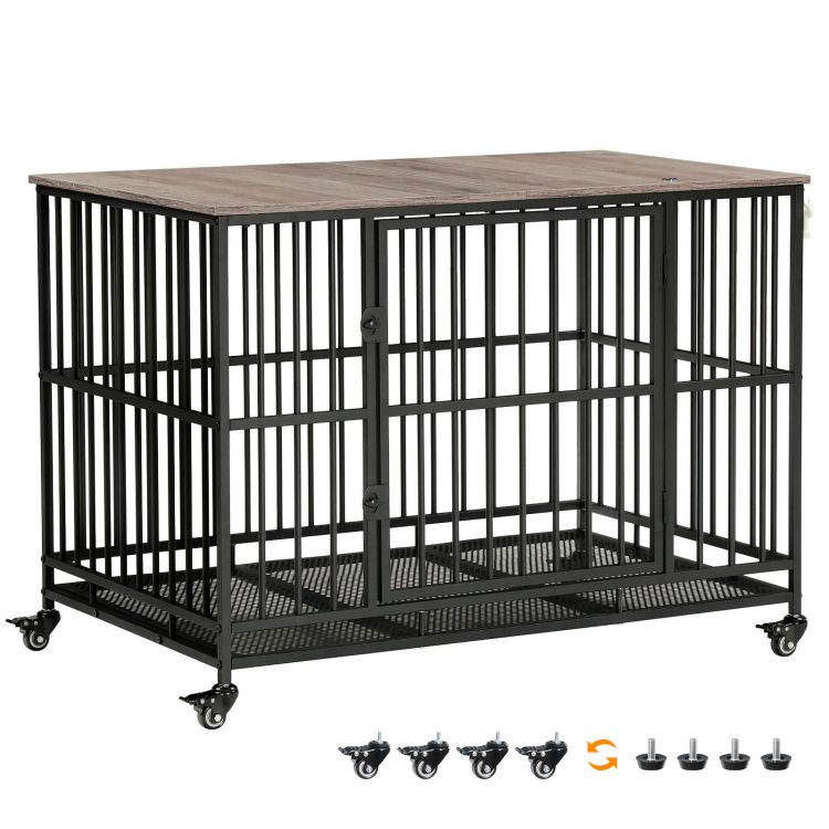 أثاث قفص الكلاب الثقيل, 38.7" بيت الكلب الكبير الداخلي مع الوجه الوجه, طاولة جانبية قفص الكلاب غير القابلة للتدمير مع عجلات, للكلب الصغير/المتوسط, اللون الرمادي والأسود BG98GW03G1