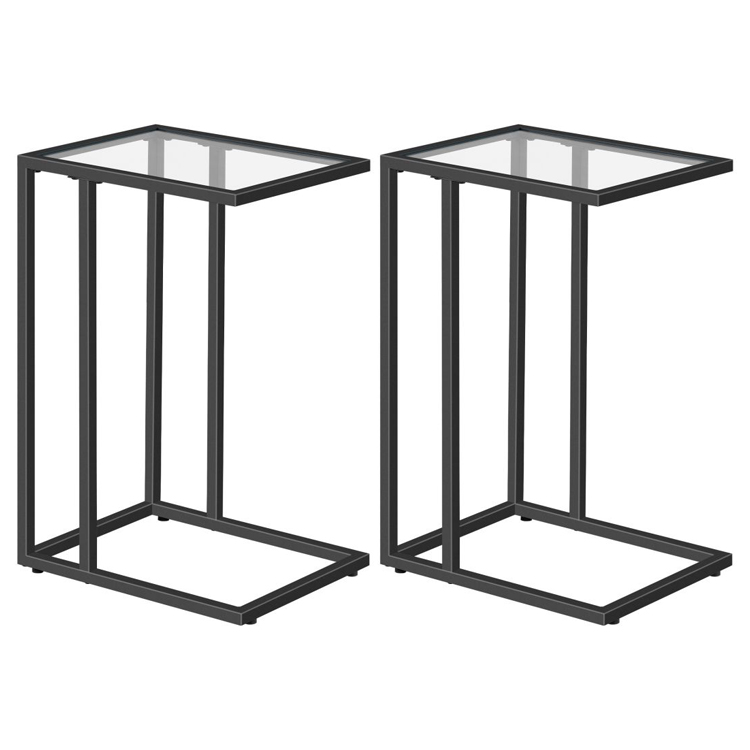 مجموعة الجدول النهائي على شكل c 2, طاولة جانبية للوجبة الخفيفة الزجاجية ذات الإطار المعدني, طاولة علبة التلفزيون للمساحة الصغيرة, أريكة الأريكة والسرير, أسلوب حديث, أسود