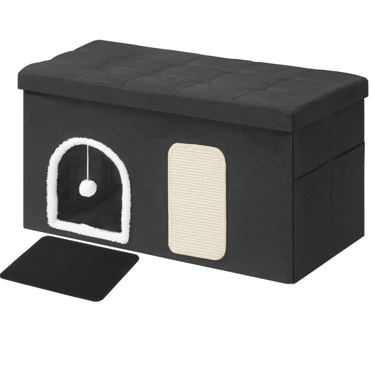 حاوية صندوق فضلات القطط, 35.4" حاوية صندوق الفضلات المخفية, أثاث صندوق فضلات القطط مع بساط القطط, تتضمن لوح الخدش ولعبة القطط, ضد للماء, تجميع سهل, أسود