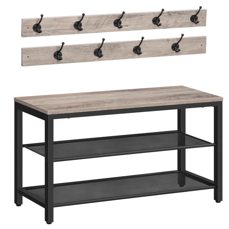 مجموعة مقعد الحذاء مع المعطف, 3-طبقة مقعد أحذية مدخل مع 9 علاقات المعاطف, 29.5" منظم تخزين الأحذية على الطراز الصناعي, قوي ودائم, للمراب, غرفة طينية, غرفة نوم, اللون الرمادي bshg7501