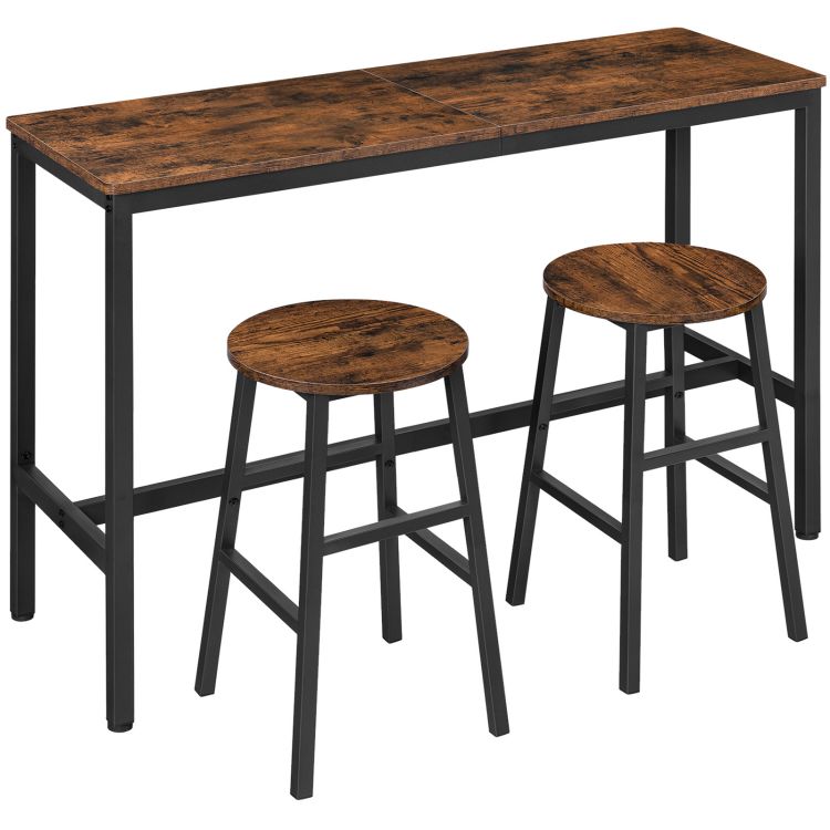 مجموعة طاولة ناعمة, طاولة شريط ضيقة مع 2 شريط براز, 47.2” rectangular pub bar table and chairs set, إطار معدني قوي, لغرفة المعيشة, غرفة الحفلات, التجميع سهل, rustic brown bthr2001