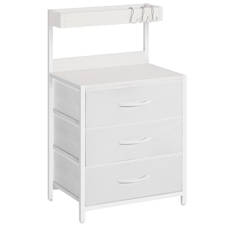 - تخزين متنوع: the white night stand offers 3 أدراج واسعة من القماش غير المنسوج بالإضافة إلى رف علوي مزود بخطافات للتخزين متعدد الاستخدامات. الأدراج ترتب الأغراض الشخصية, مع القسم العلوي لعناصر مثل المنبه والكوب, وخطافات للملحقات