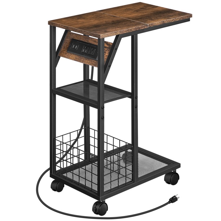 طاولة نهاية على شكل C مع محطة الشحن, الجدول الجانبي مع منافذ USB ومنافذها, طاولة الأريكة للمساحات الصغيرة, ج طاولة الأريكة, طاولة الوجبات الخفيفة لغرفة المعيشة, غرفة نوم, بني ريفي