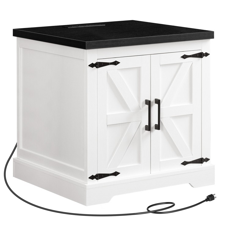 منضدة المزرعة مع محطة شحن, 24" طاولة نهاية كبيرة مع باب الحظيرة ورف تخزين قابل للتعديل, منضدة بيضاء مربعة, طاولة بجانب السرير ريفية لغرفة النوم, معيشة