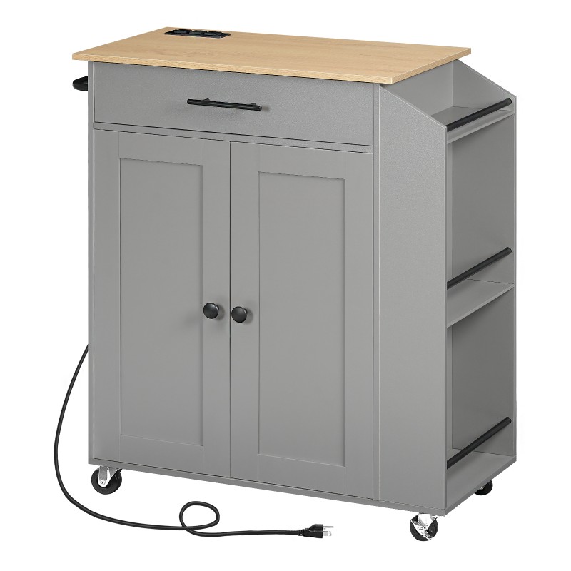 جزيرة المطبخ الرمادية والطبيعية مع منفذ الطاقة, جزيرة تخزين المطبخ مع رف توابل ودرج, عربة المطبخ المتداول على عجلات, من أجل الوطن, المطبخ وغرفة الطعام