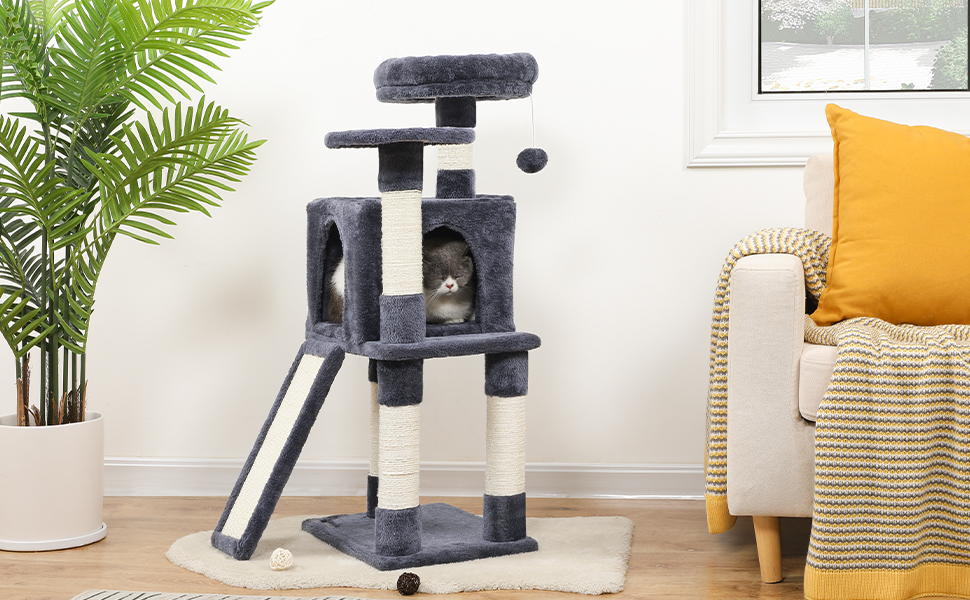 - جنة القط: شجرة القطط هي المكان الذي يمكن للقطط أن تستمتع فيه, مثل ممارسة الرياضة, الراحة واللعب. عمود الخدش المزدوج للقطط مغطى بحبل السيزال, وهو جرح بإحكام وليس من السهل أن تفقد, ويستخدم في شحذ المخالب لتحرير طبيعة القطة. يعمل جهاز مكافحة الانقلاب المضمن دائمًا على إبقاء قطتك الصغيرة في بيئة آمنة