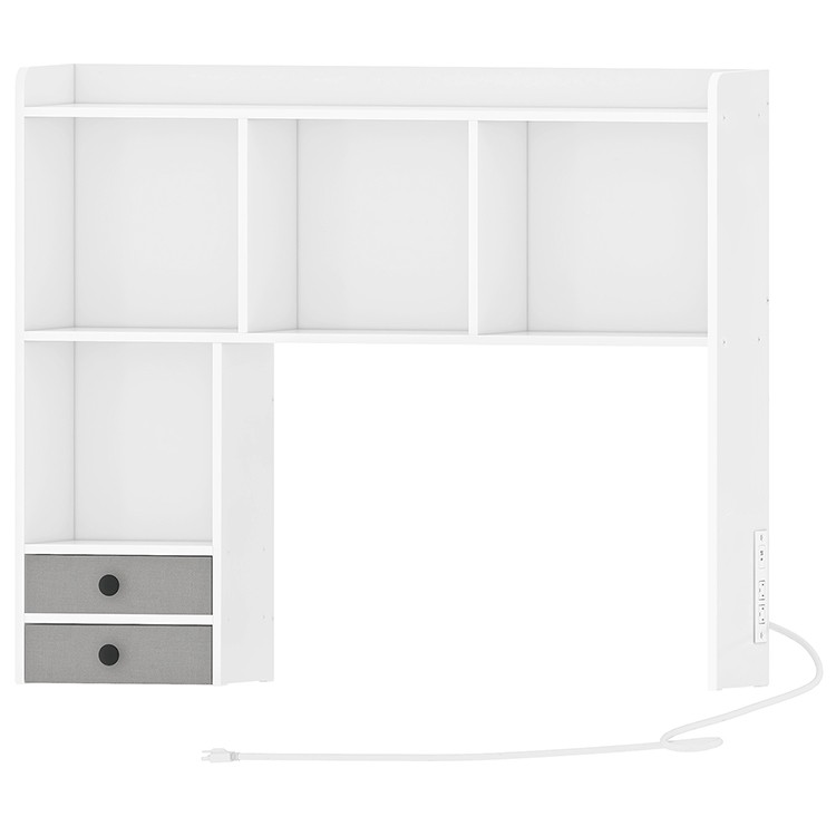رف كتب سطح المكتب مع منافذ, مكتب سطح المكتب, منظم القفص المكتبي, خزانة سطح المكتب الخشبية مع 7 رفوف و 2 أدراج للدراسة, المسكن, المنزل الأبيض