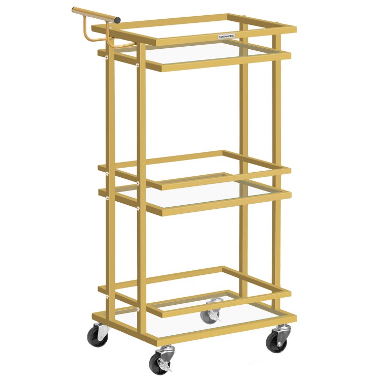 - نظام الألوان الأنيق: يضيف مزيج الإطار المعدني الذهبي والزجاج المقسى الشفاف لمسة من الفخامة الأنيقة إلى عربة المطبخ هذه. فهو لا يكمل ديكور منزلك فحسب، بل يعرض أيضًا ذوقك وأناقتك