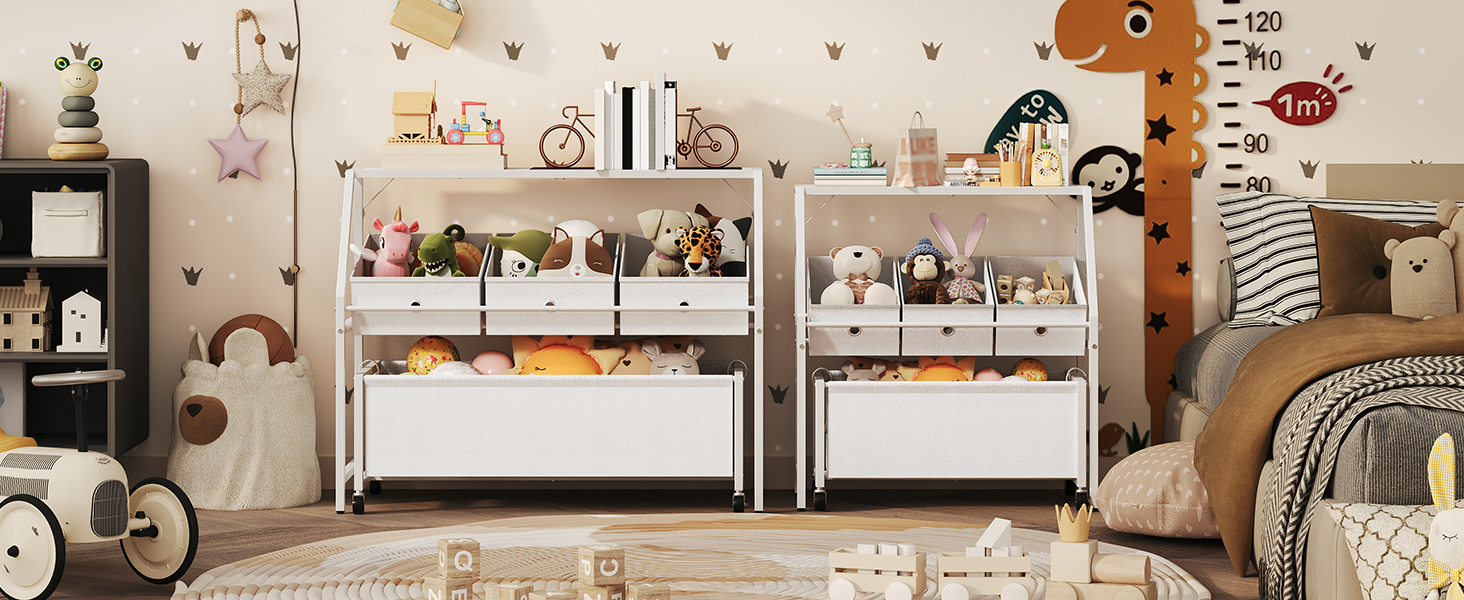 - سعة تخزين قوية: منظم الألعاب لديه 3 صناديق تخزين واسعة قابلة للإزالة وصندوق ألعاب بعجلات, توفير مساحة كبيرة للألعاب, كتب, إلخ., مساعدة الأطفال على النمو في بيئة واسعة ومنظمة