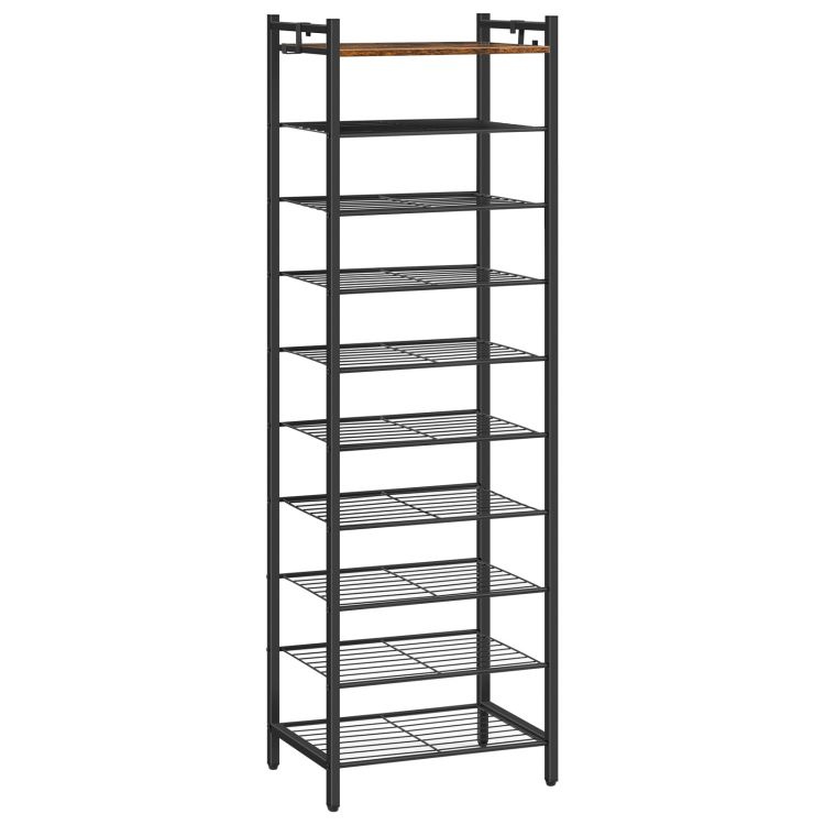 رف الأحذية, 10 منظم الأحذية الضيق من المستوى, وحدة تخزين رف الأحذية مع 9 أرفف المعادن, توفير مساحة, يمسك 18-22 أزواج من الأحذية, للدخول, المدخل, التجميع سهل, بني ريفي