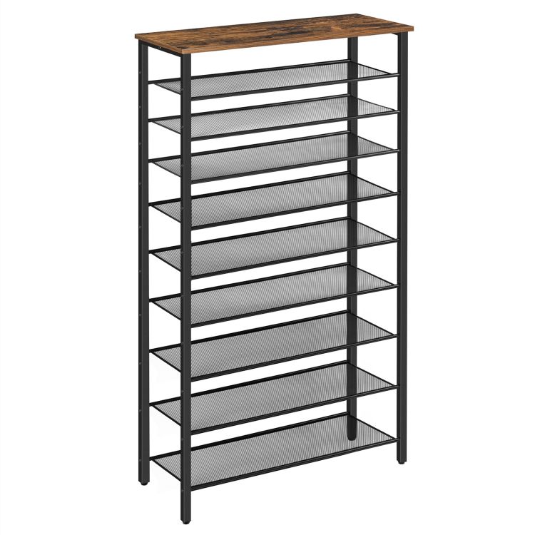 10-رف الأحذية الطبقة, منظم الأحذية للخزانة, مدخل, رف أحذية كبير السعة, ل 36-40 أزواج من الأحذية, مستقر قوي, تخزين الأحذية مع 9 رفوف شبكة معدنية, بني ريفي