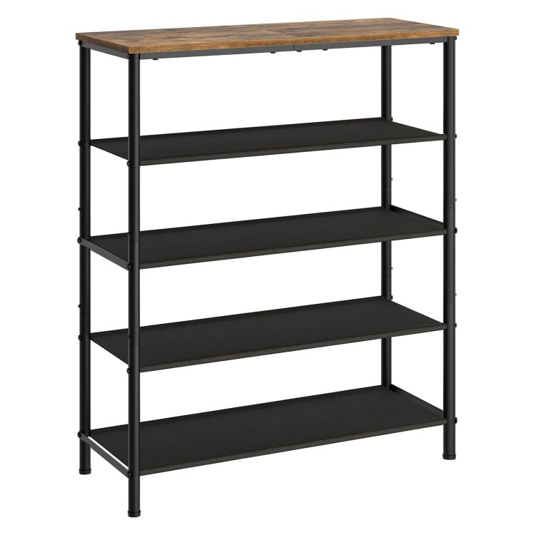 - multi-5 tier shoe rack: رف تخزين الأحذية هذا مع 4 أرفف من القماش تحافظ على حذائك في أزواج, من السهل التقاطها ووضعها, الحفاظ على كل شيء مرتبًا. يمكن للجزء العلوي الخشبي أن يحمل مفاتيح أو أشياء صغيرة شائعة الاستخدام, حتى لا تضطر إلى التسرع عند الخروج