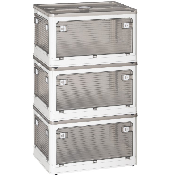 14.8 gal storage bins with lids, folding storage box with wheels and 5 الأبواب, 3-pack collapsible plastic storage bin, stackable storage containers, للمنزل, office organizing, white wg56cwp301