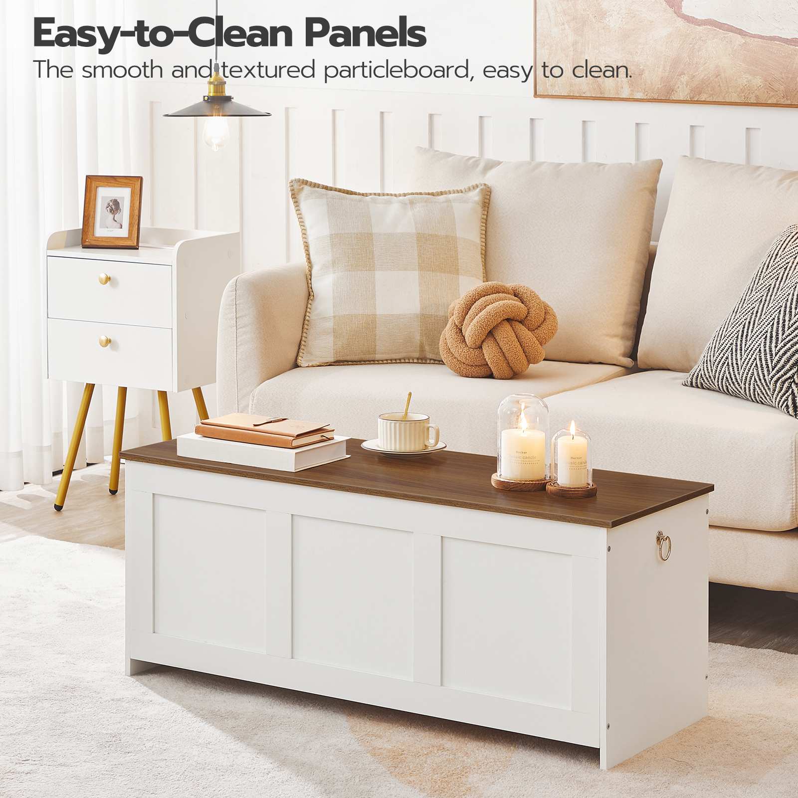 آمنة وموثوقة: The storage chest is equipped with 2 يتوقف و 1 مفصل السلامة, ensuring smooth operation while maintaining the top at the desired angle. This design provides sufficient time for storing shoes, كتب, bedding or children's toys safely and conveniently.