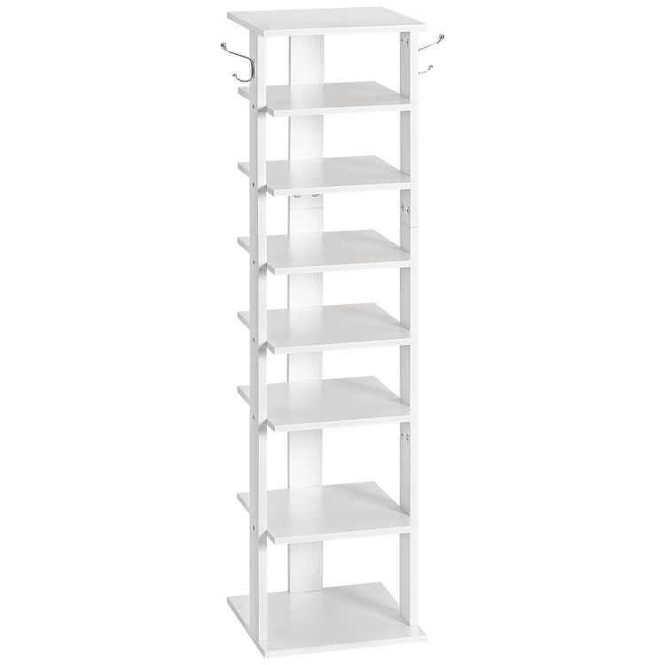 رف الأحذية العمودي, 8 منظم تخزين الأحذية من الطبقة مع خطافات, رف الأحذية الضيق ل 8 أزواج, توفير المساحة, مستقرة وقوية, للدخول, غرفة الجلوس, غرفة نوم, أبيض