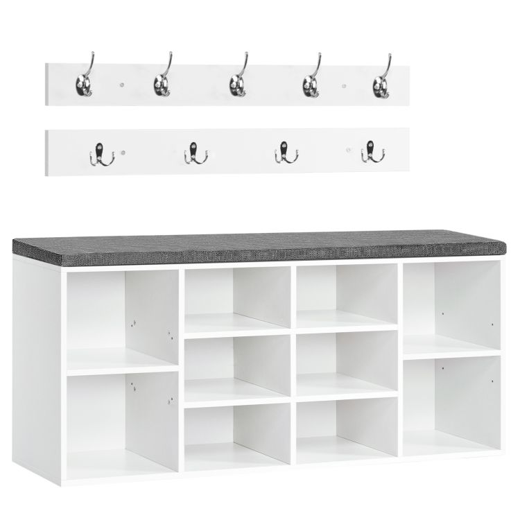 مقعد الحذاء, مقعد التخزين مع وسادة, 10 المقصورات, 9 علاقات المعاطف, مقعد رف الأحذية, خزانة تخزين متعددة الوظائف للدخول, المدخل, غرفة نوم, الأبيض والرمادي WT110HX01