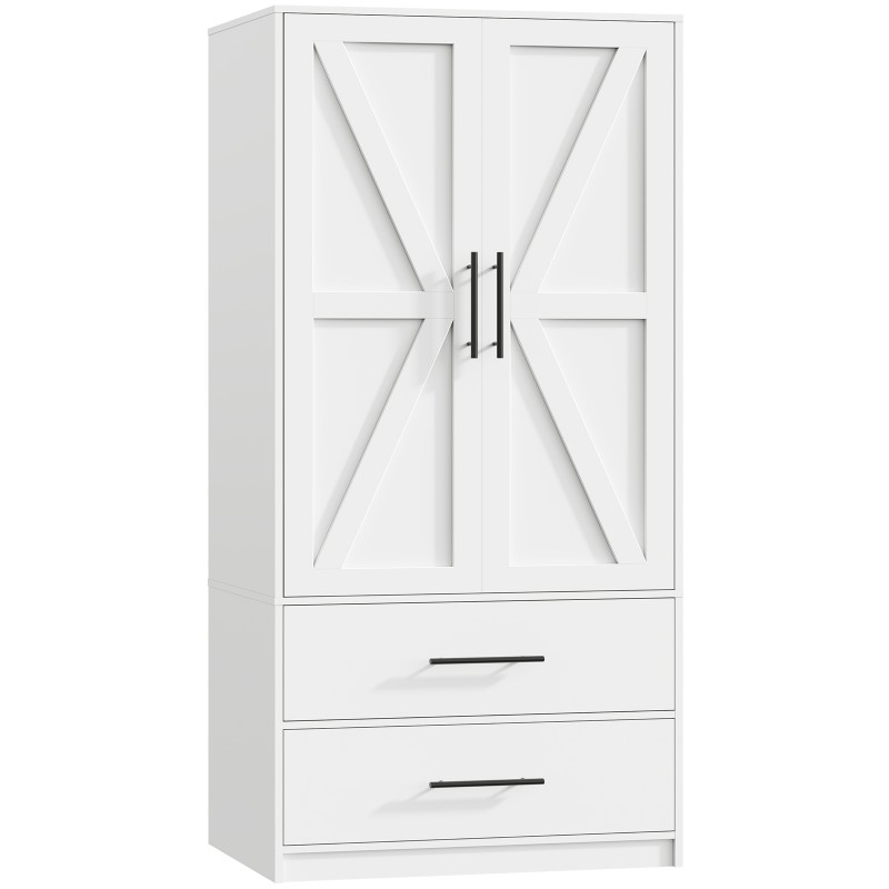خزانة خزانة Armoire مع 2 أدراج, 70.9" خزانة خزانة طويلة مع قضيب معلق, 2 الأبواب غرفة نوم armoires, خزانة تخزين ملابس المزرعة, armoire الخشبية لغرفة النوم, أبيض
